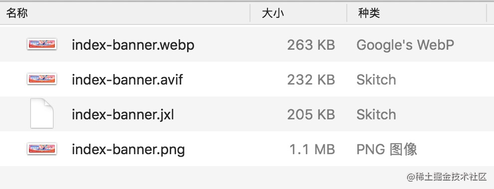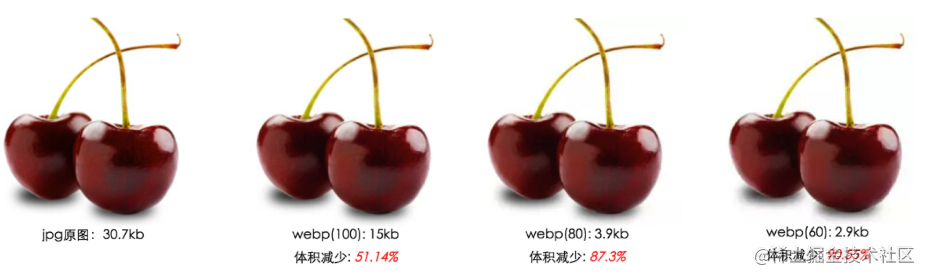 看看同一张图片,相同质量下的大小表现: