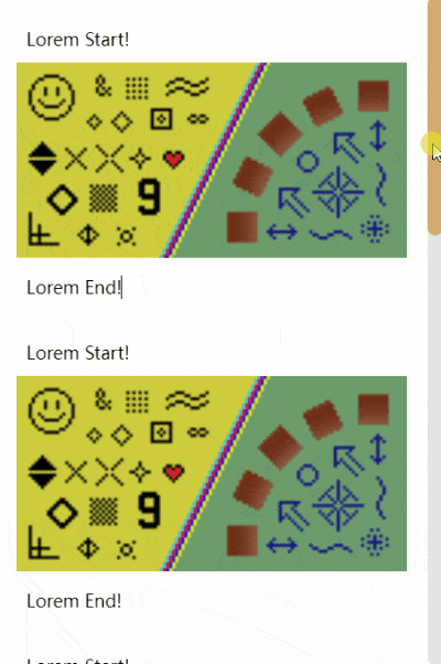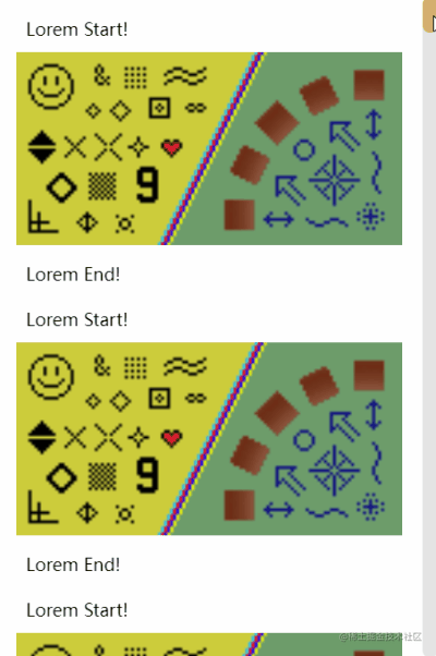 <div class="g-wrap"> // 模块 1 <div class="paragraph"> <p>Lorem Start!</p> <img src="https://s1.ax1x.com/2023/02/20/pSX1xMV.png" alt="" /> <p>Lorem End!</p> </div> // 模块 2 <div class="paragraph"> <p>Lorem Start!</p> <img src="https://s1.ax1x.com/2023/02/20/pSX1xMV.png" alt="" /> <p>Lorem End!</p> </div> // ... 连续几十个上述类似的结构</div>只需要给需要延迟(实时)渲染的元素,设置简单的 CSS 样式: