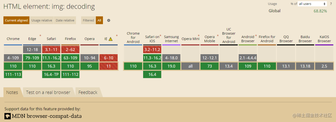 同样的,我们来看看到今天(2023-02-26),decoding="async" 的兼容性,整体还是非常不错的,作为渐进增强方案使用,是非常好的选择。