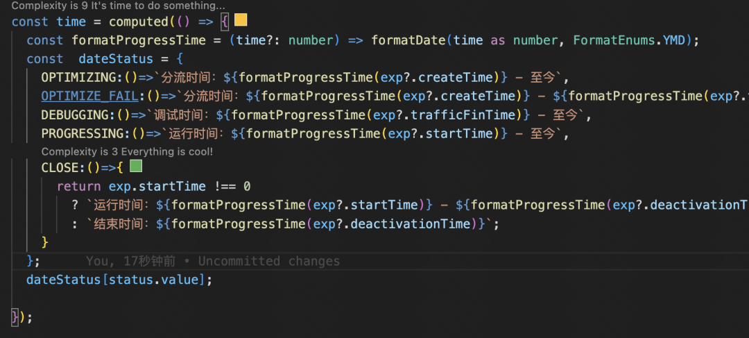 通过 eslint 或 CodeMetrics 可以看到项目中存在较多的圈复杂度大于 10 的模块