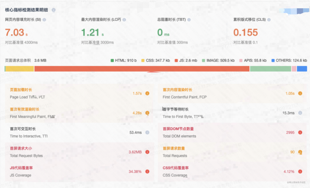 通过内部工具(类似 Lighthouse + performance )对页面进行分析,如下图