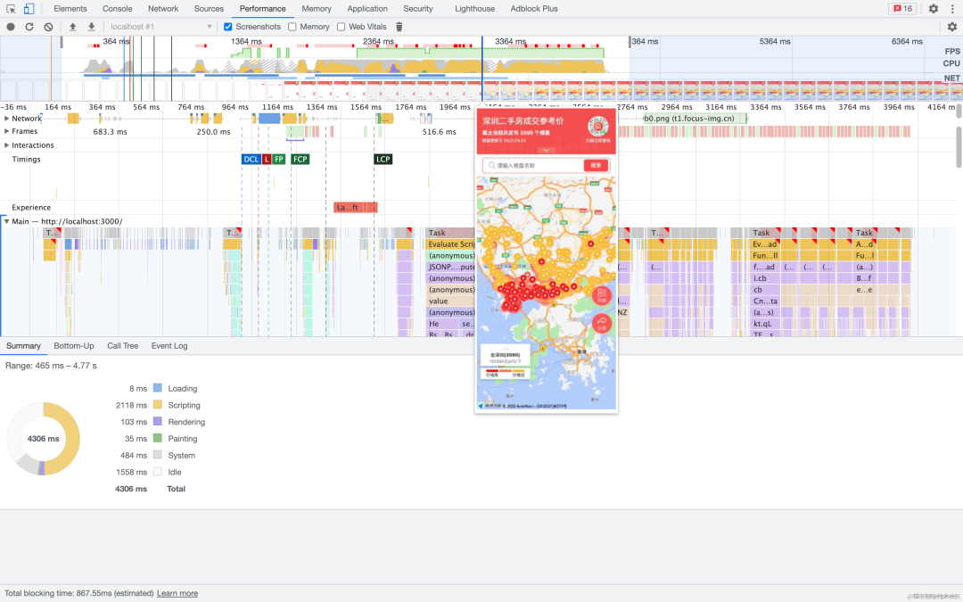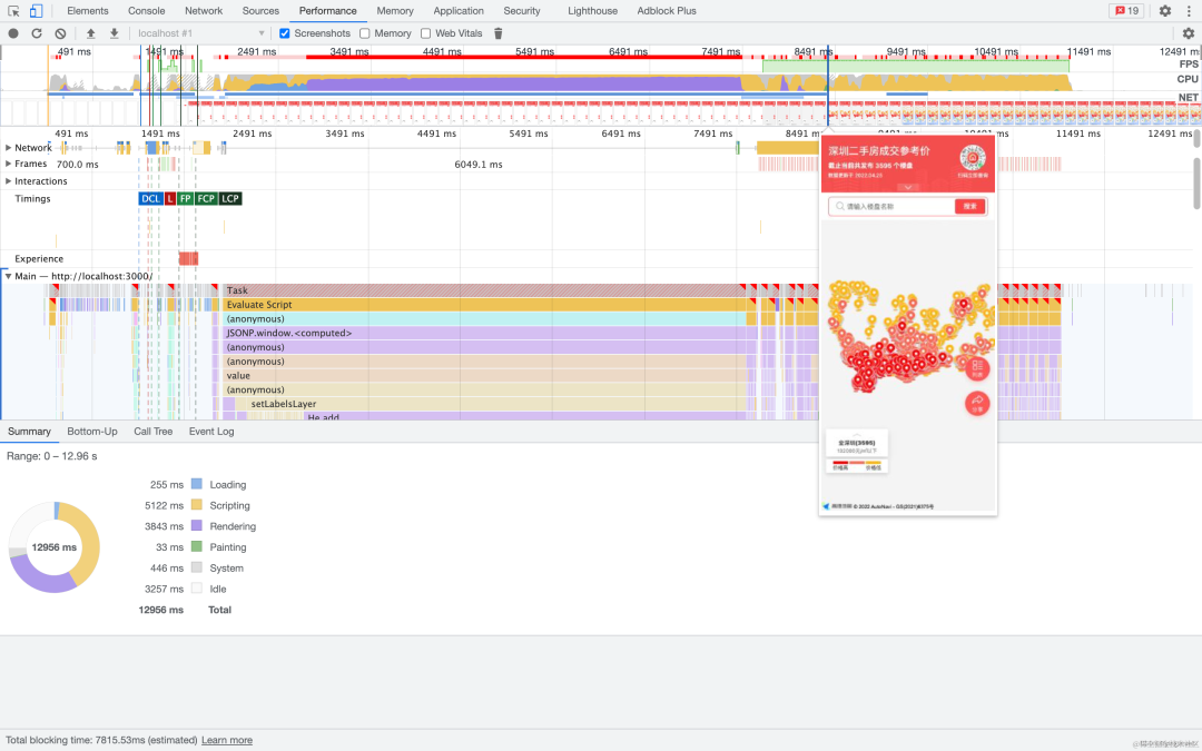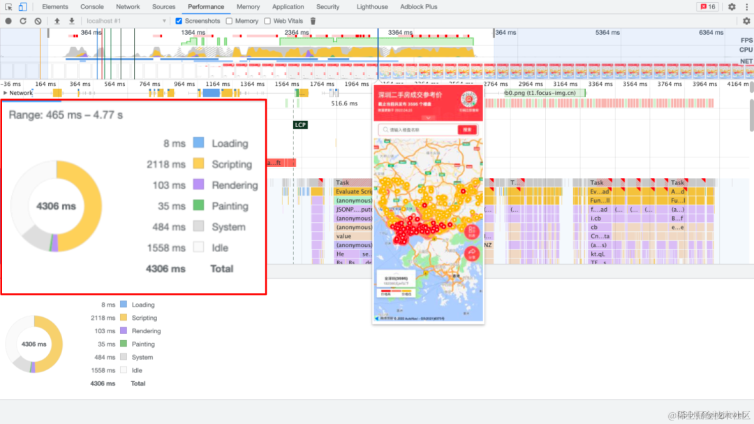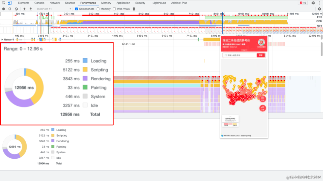 没有将「海量标注」做推迟加载处理时,页面首屏加载地图展示出来的时间在 12s 左右,而且还是不完全展示(只展示了海量点标记,地图没真正展示出来)。优化之后,地图和「海量点标记」完全加载出来只用了 3s,这个时间虽然不能说很快,但是 3s 的时间普通用户是完全可以接受的。优化之后,首屏的加载时间可以说提升了 4 倍!amazing!😲