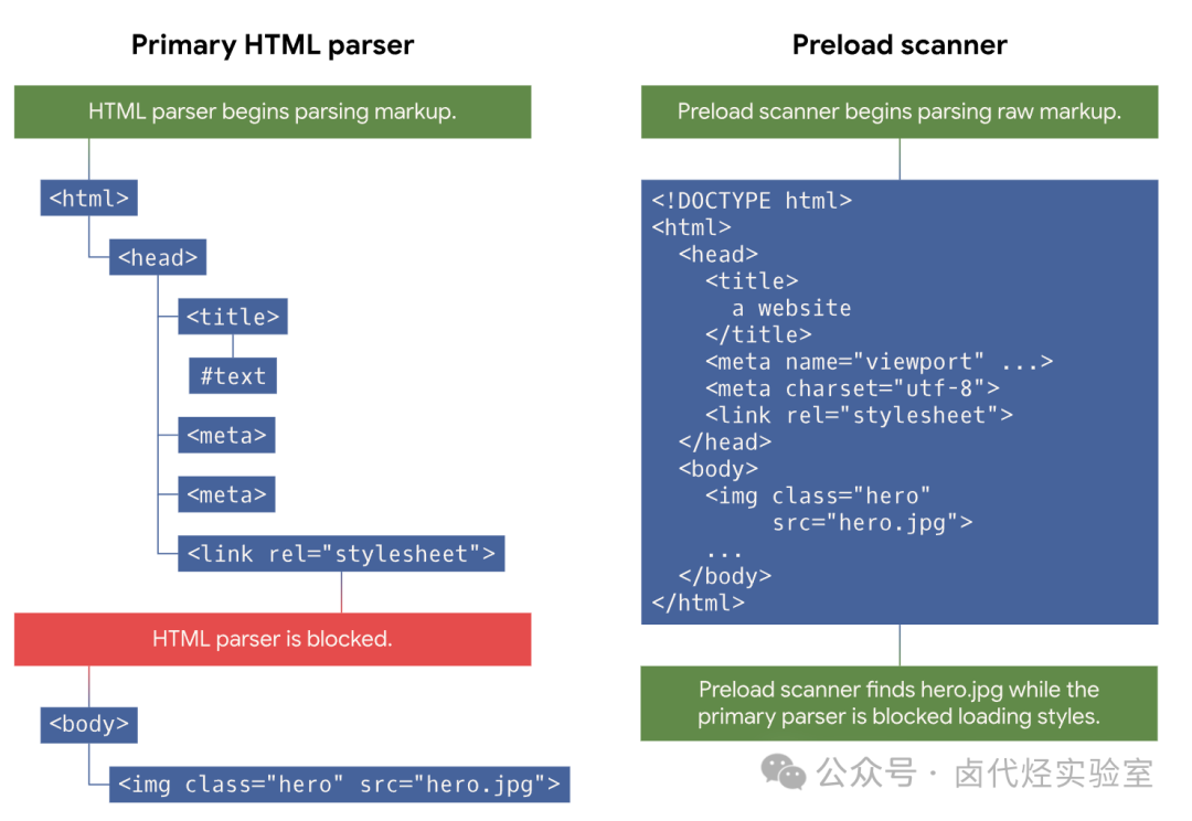 HTML Preload Scanner,会直接收集当前 HTML 里所有值得下载的子资源,然后并行下载它们: