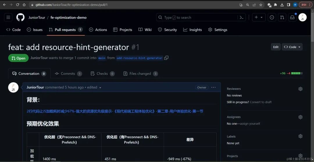 《接入 resource-hint-generator[11]》完整示例 Merge Request 请参考:github.com/JuniorTour/…[12]