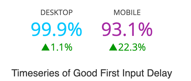 同时,从 chrome-ux-report[2],我们可以看到,93% 的网站在移动设备上具有不错的 FID,