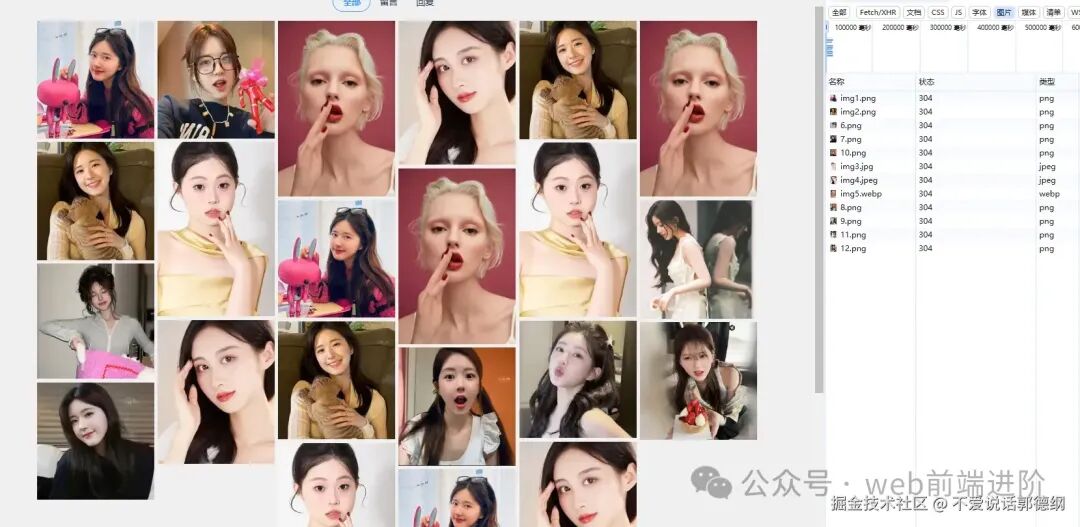 <img>标签来加载图片,浏览器同样会请求并缓存图片,但如果图片在初次加载时不可见(比如在页面下方),用户滚动到该位置时,可能会再次触发网络请求,尤其是在使用懒加载(lazy load)等技术时。如果图片已经预加载过,浏览器就可以从缓存中直接加载,避免了再次请求。