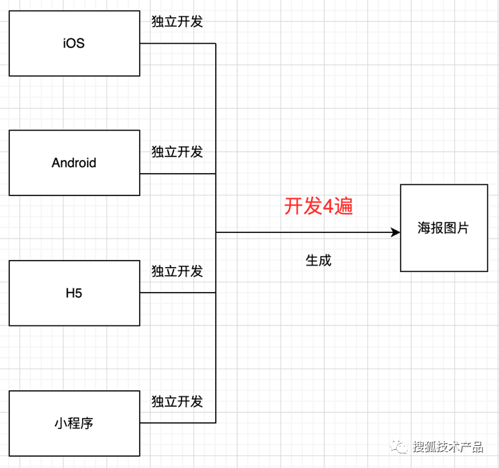 各端无法复用:如图 2, 如果要全平台都要做图片分享,那么需要各端分别开发,即使生成的图片一模一样,也要开发