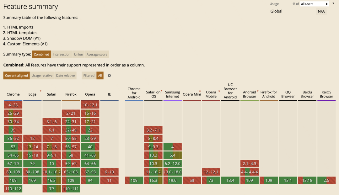 现阶段的 Safari 和 Chrome 已经都原生支持了 Web Components 的规范标准。Firefox,Edge 和 IE11 在 Polyfill 的支持下也都能很好的支持 Web Components。
