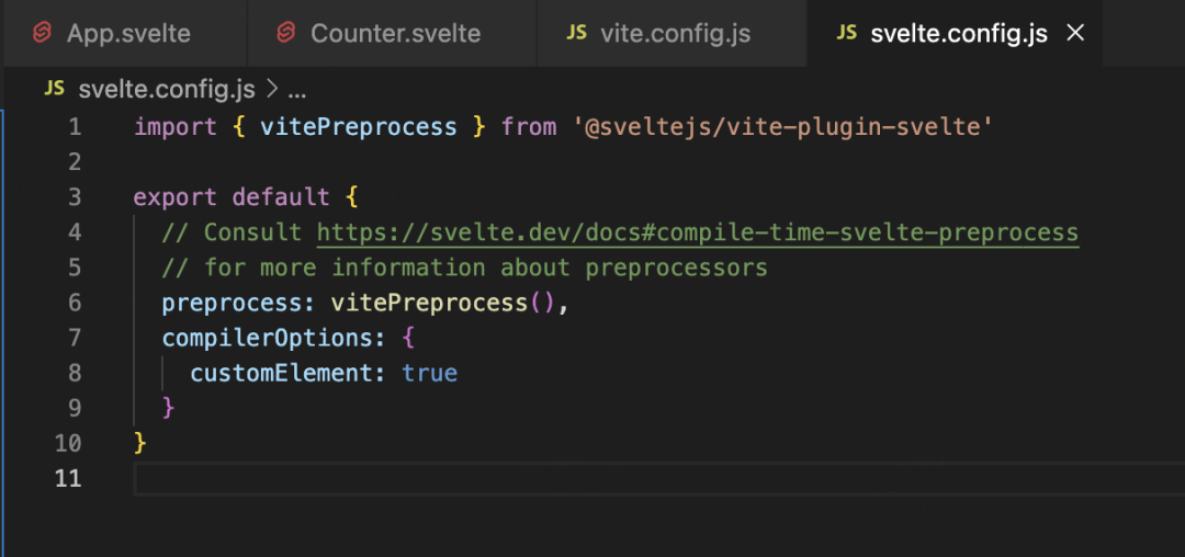 需要在 svelte.config.js 文件中 compilerOptions: