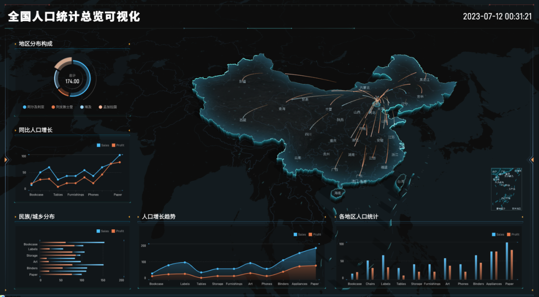 从数据场景而言,大屏通常用于展示实时数据、动态信息和即时反馈。通过动态效果,可以更好地呈现和展示这些数据的动态变化和趋势,使观众能够及时了解最新的数据情况。