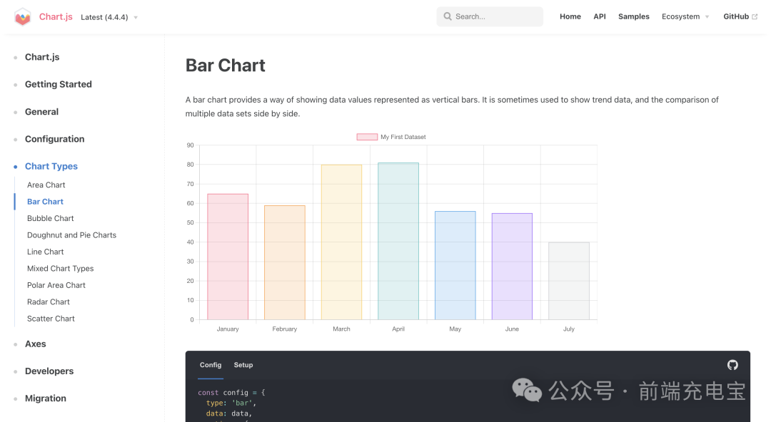 Chart.js 是一个基于 HTML5 的 JavaScript 图表库,它通过 Canvas 元素创建美观的图表,支持多种常见的图表类型,如折线图、柱状图、饼图等。它的设计理念是简单易懂,让开发者能够快速上手,同时保持足够的灵活性,满足各种需求。**Github:**https://github.com/chartjs/Chart.js