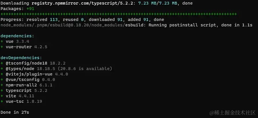 我选择使用 pnpm1 安装项目依赖:pnpm i,各安装包的版本号可见于下图:
