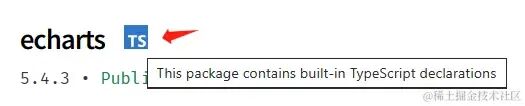 首先是安装 ECharts:pnpm add echarts。在 npm 的仓库搜索 echarts 可以看到其带有如下所示的 ts 标志: