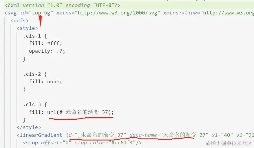 因为图层的名称会影响到导出的 svg 文件中元素的 id 名称。另外导出的 svg 文件中也可能存在一些中文命名或一些不必要的代码,我们可以自行修改: