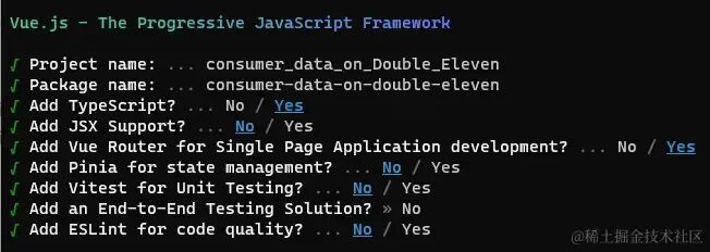 执行命令 npm create vue@latest 创建基于 Vite 构建的 vue3 项目,功能选择如下: