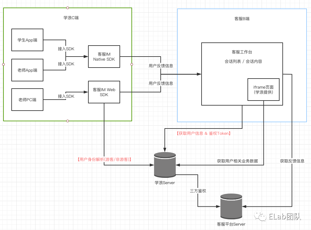 C 端的客服 SDK 识别这个用户的身份信息, 连带提交的反馈信息传送到客服的数据库中