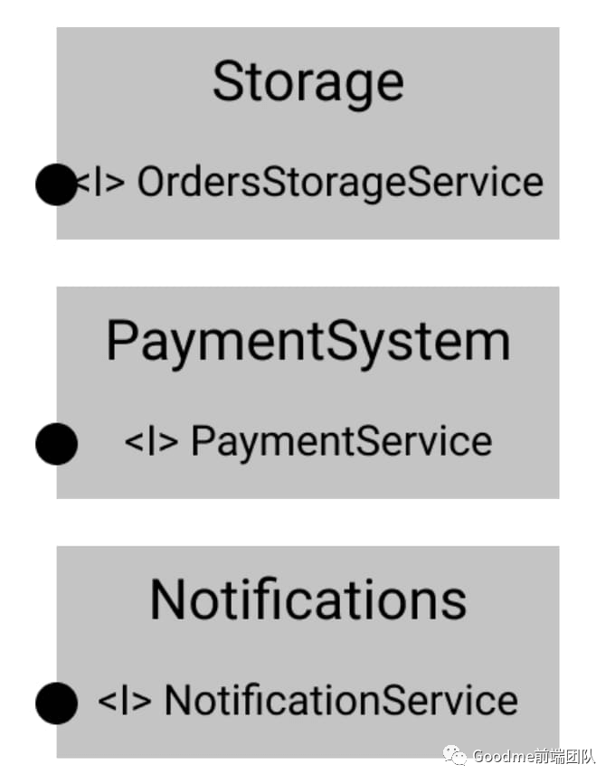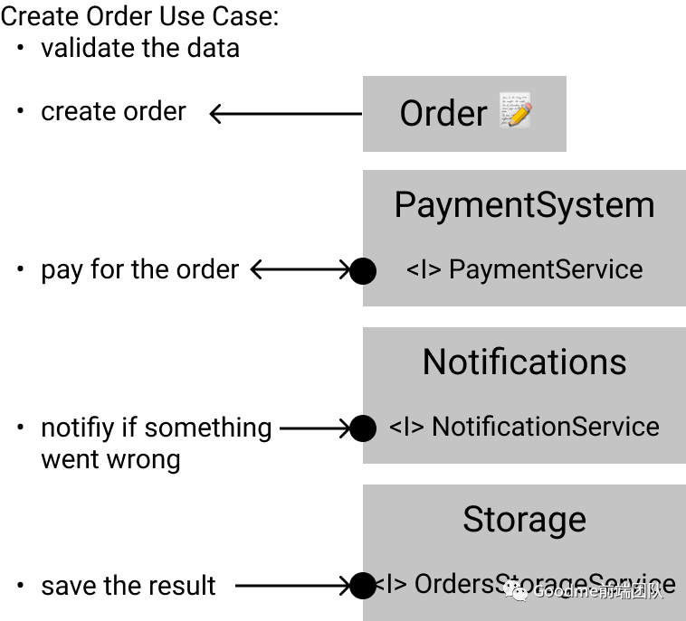 应用场景即用例是单独描述的。它们决定了需要哪些第三方服务,我们使外部世界适应我们的需求,这给了我们更多选择第三方服务的自由。例如,如果当前的支付系统开始收费过高,我们可以迅速改变支付系统。
