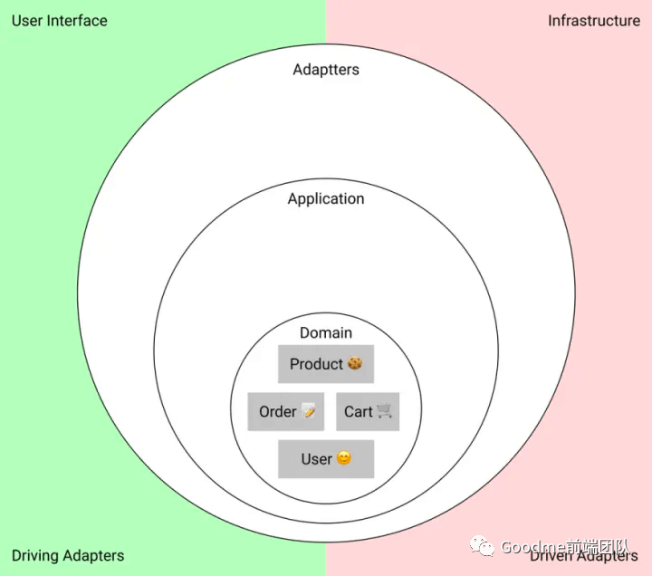 被驱动型适配器与基础设施(infrastructure)进行交互。在前端,大部分的基础设施是后台服务器,但有时我们可能会与其他一些服务直接交互,如搜索引擎。
