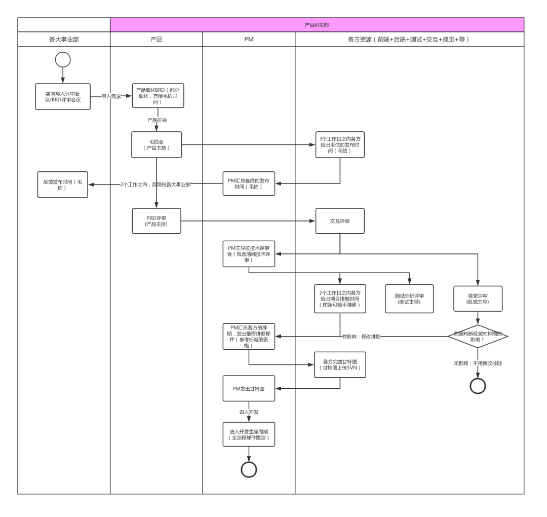 在政采云产研团队的研发流程中,前端方案设计是在需求和交互评审之后、测试评审和正式开发之前,属于需求阶段和开发阶段的中间节点。此时需求的功能和用户交互场景基本已经确定,前后端技术方案之间互相补充描述清楚需求的可行性、整体架构和具体实现。同时在测试分析之前,也是帮助 QA 梳理测试重点和用例场景。