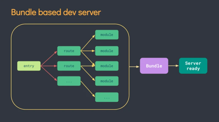bundleless类运行时打包工具的启动速度是毫秒级的,因为不需要打包任何内容,只需要起两个server,一个用于页面加载,另一个用于HMR的WebSocket,当浏览器发出原生的ES module请求,server收到请求只需编译当前文件后返回给浏览器不需要管依赖。