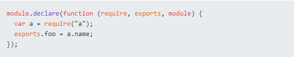 在当时浏览器上应用CommonJs还有另外一个流派 module/2.0, 其中有BravoJS的 Modules/2.0-draft 规范和 FlyScript的 Modules/Wrappings 规范。