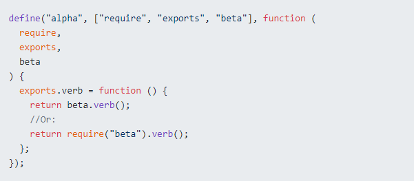 AMD规范采用依赖前置,先把需要用到的依赖提前写在 dependencies 数组里,在所有依赖下载完成后再调用factory回调,通过传参来获取模块,同时也支持require("beta")的方式来获取模块,但实际上这个require只是语法糖,模块并非在require的时候导入,而是跟前面说的一样在调用factory回调之前就被执行,关于依赖前置和执行时机这点在当时有很大的争议,被 CommonJs社区所不容。