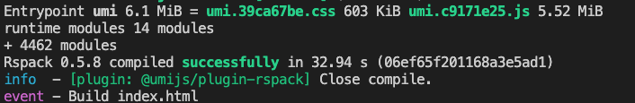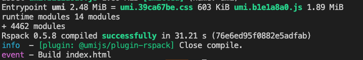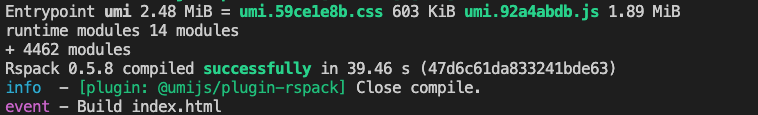 dx add @umijs/plugin-rspack@latest -D- 添加 UmiJS 的 plugin:在 config/config.ts 中修改 plugins 属性。
