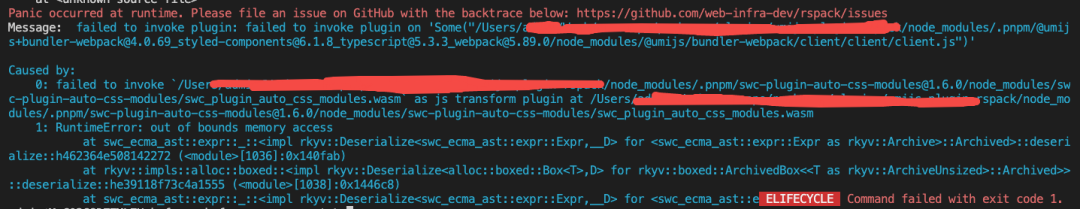 问题解决办法:实际上只要通过将 swc-plugin-auto-css-modules 的 swc_core 版本修改为 0.88.x~0.89.x 这个范围内,再编译出新的 wasm 文件即可解决;若有其他类似情况,也可以借鉴一下。