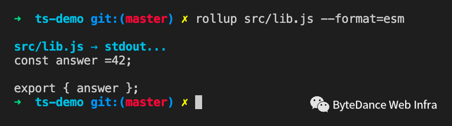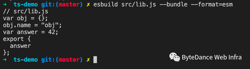 export const answer = 42;export const secret = 10;console.log('lib');export * from './reexport';- reexport.js