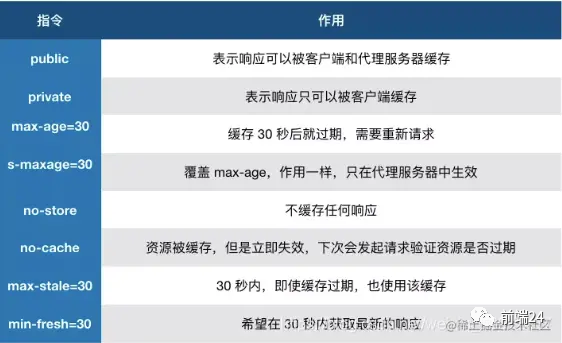 在 HTTP/1.1 中,Cache-Control是最重要的规则,主要用于控制网页缓存,主要取值为: