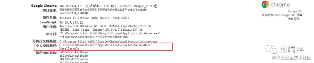 启动 Chrome 浏览器, 在 Chrome 浏览器的地址栏输入 Chrome:Version 查看 Chrome 浏览器保存文件的位置。