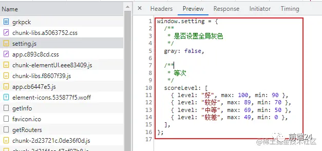 拿 setting.js 举例:此时浏览器获取的内容为