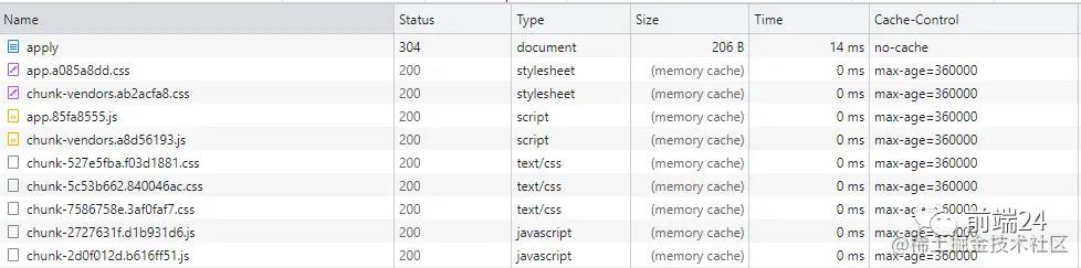 }设置好后,重启 nginx 服务,强制刷新再普通刷新页面,会发现资源已经根据 nginx 配置了对应的缓存策略,Size 栏也能看到是获取的内存中的缓存。