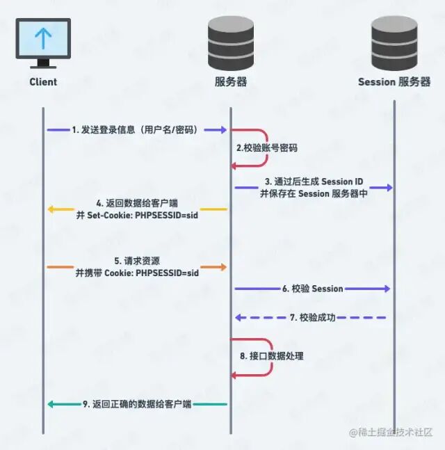 2.3 Session-Cookie 的认证流程图