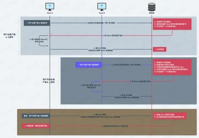 突然用户在客户端 B 上开始登录操作,我们会发现,步骤和在客户端 A 上面的操作几乎是一致的;