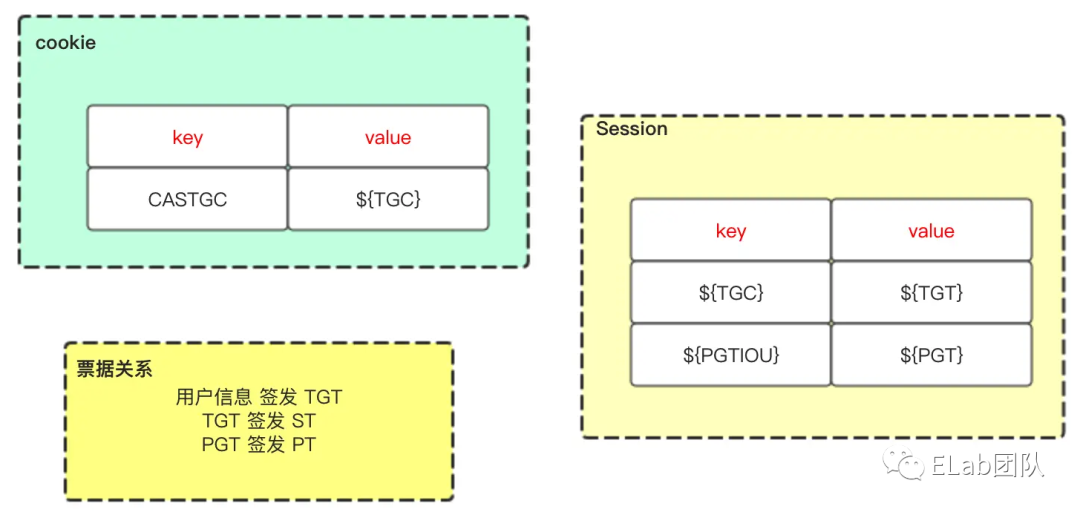 CAS Server 生成 TGT 放入自己的 Session 中,而 TGC 就是这个 Session 的唯一标识(SessionId),以 Cookie 形式放到浏览器端,是 CAS Server 用来明确用户身份的凭证。