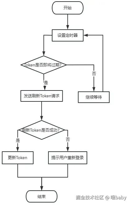 let refreshTimeout;// 检查并刷新 Token 的函数function checkAndRefreshToken() { const accessToken = localStorage.getItem('accessToken'); if (accessToken) { const expiresIn = getTokenExpiresIn(accessToken); // 获取 Token 剩余时间 if (expiresIn < 60) { // 剩余时间小于 60 秒 refreshAccessToken().then(newAccessToken => { localStorage.setItem('accessToken', newAccessToken); // 重新设置定时器 refreshTimeout = setTimeout(checkAndRefreshToken, (getTokenExpiresIn(newAccessToken) - 60) * 1000); }); } else { // 设置定时器,在过期前 1 分钟刷新 refreshTimeout = setTimeout(checkAndRefreshToken, (expiresIn - 60) * 1000); } }}// 初始化时启动检查checkAndRefreshToken();3. 服务端主动刷新