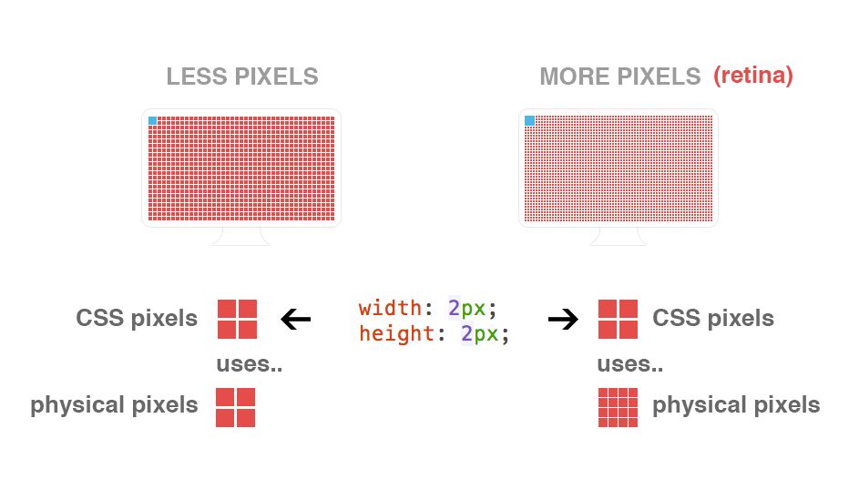 这里说明一下,无论dpr多大,1px的大小通常来说是一致的,这也就意味着,随着dpr的增大,物理像素点会越来越小,这样才能容纳更多的物理像素,才能更高清,更retina