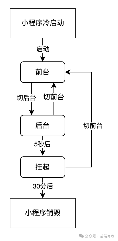 从小程序生命周期的角度来看,我们一般讲的「启动」专指冷启动,热启动一般被称为后台切前台。