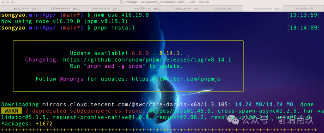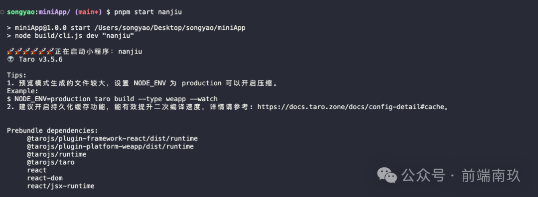 多小程序架构搭建完,有同事反馈启动报错,我心想:不能吧,我自己都验证过了,从报错信息上看他应该是启动时没输入需要启动的小程序,直接pnpm start了,这样的话就不知道应该启动哪个小程序了。其实启动命令已经在项目文档上写了,可能是没注意看。