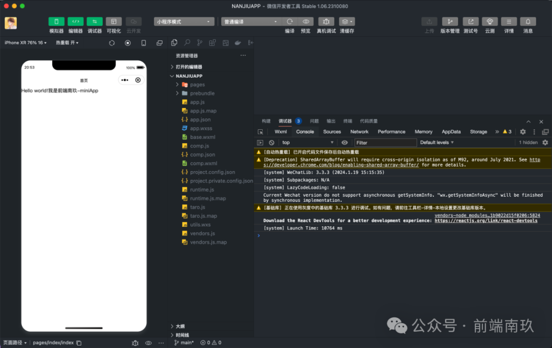 再把该产物使用小程序开发者工具看是否能跑起来