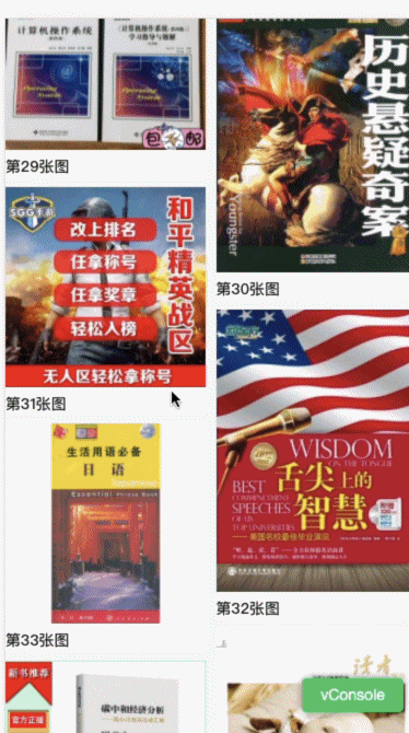 缺点:耦合下拉、无限加载组件;包含 PC 端等逻辑,包体积较大,对于追求性能的页面并不友好(作为开源方案,兼容更多的场景其实无可厚非,只是这些功能我们都已经有单独的组件实现);一次加载所有图片,不支持懒加载