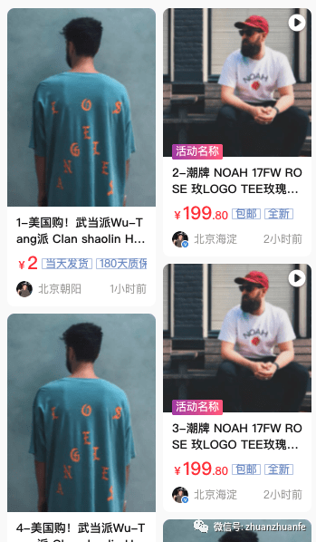 交错式瀑布流视觉表现为宽度相等、高度不定的元素组成参差不齐的多栏布局,转转的首页以及商详推荐页面会选择以这种方式来做承载