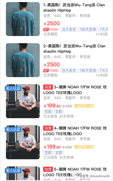 其中卡片流以一个下拉列表的形式呈现。这种布局可以让用户专注于单个列表项,有利于阅读。主要应用于转转的二级列表页入口,效果如下