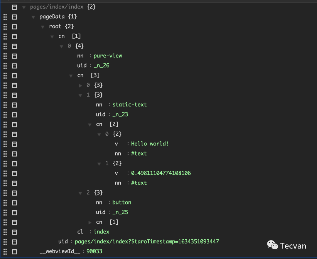下面这张图就是经过react处理之后,能够拿到页面的数据,将其传递给小程序之后,就能递归渲染出来。