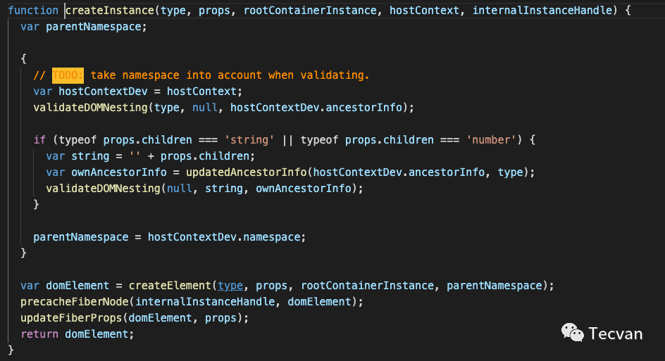 是不是看见了一些非常熟悉的函数名,在上一讲的基本原理中已经提到过了,这里我们就不再赘述。同时再看一下FiberNode的结构,也和react的保持一致,只不过我们在js层是无法拿到真实结点的,所以stateNode只是一个代号。