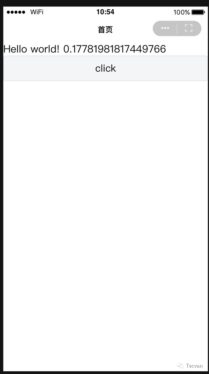 import { Component } from 'react'import { View, Text, Button } from '@tarojs/components'import './index.css'export default class Index extends Component { state = { random: Math.random() } componentWillMount () { } componentDidMount () { } componentWillUnmount () { } componentDidShow () { } componentDidHide () { } handleClick = () => { debugger; console.log("Math.random()", Math.random()); this.setState({random: Math.random()}) } render () { return ( <View className='index'> <Text>Hello world! {this.state.random}</Text> <Button onClick={this.handleClick}>click</Button> </View> ) }}这是一个用taro写的组件,把它编译到字节小程序之后是这样的效果: