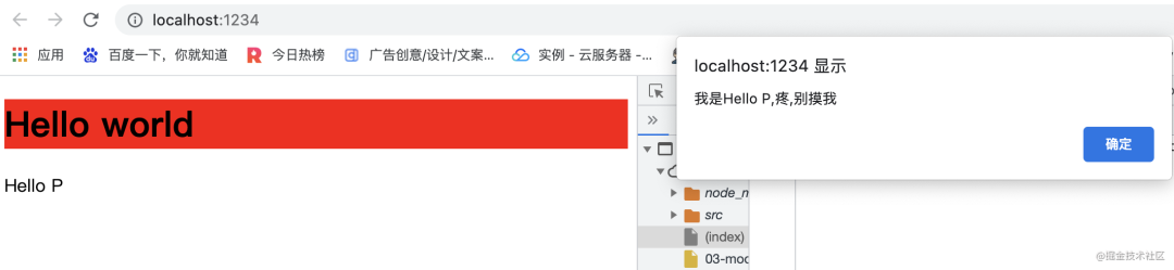 import {init} from 'snabbdom/build/package/init.js'import {h} from 'snabbdom/build/package/h.js'// 1.导入模块import {styleModule} from "snabbdom/build/package/modules/style";import {eventListenersModule} from "snabbdom/build/package/modules/eventListeners";// 2.注册模块const patch = init([ styleModule, eventListenersModule])// 3.使用h()函数的第二个参数传入模块中使用的数据(对象)let vnode = h('section', [ h('h1', {style: {backgroundColor: 'red'}}, 'Hello world'), h('p', {on: {click: eventHandler}}, 'Hello P')])function eventHandler() { alert('疼,别摸我')}const app = document.querySelector('#app')patch(app,vnode)当 init 使用了导入的模块就能够在 h 函数中用这些模块提供的 api 去创建虚拟DOM(Vnode)对象; 在上文中就使用了样式模块以及事件模块让创建的这个虚拟 DOM 具备样式属性以及事件属性, 最终通过patch函数对比两个虚拟dom(会先把 app 转换成虚拟 dom), 更新视图;