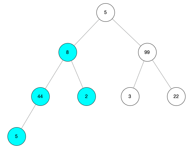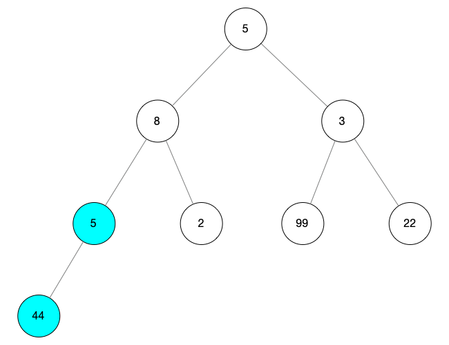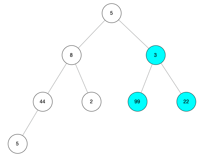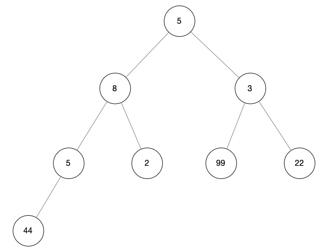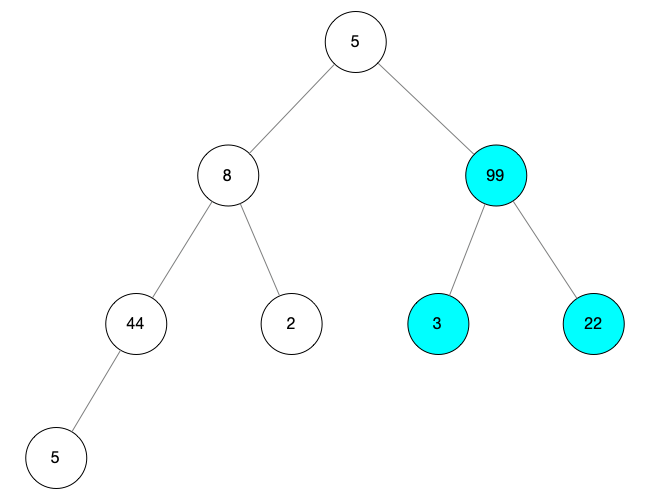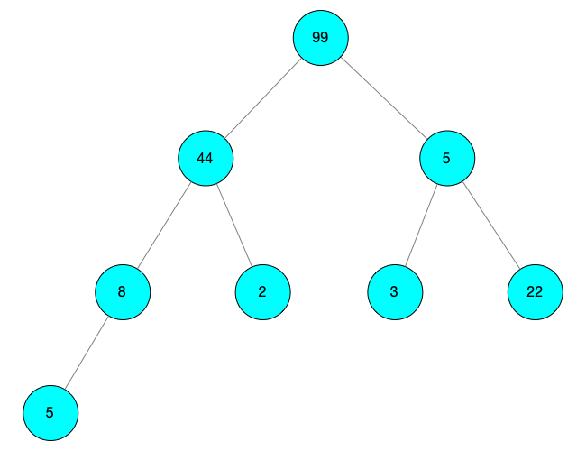 - 用数组进行表示则为:[99, 44, 22, 8, 2, 3, 5, 5]