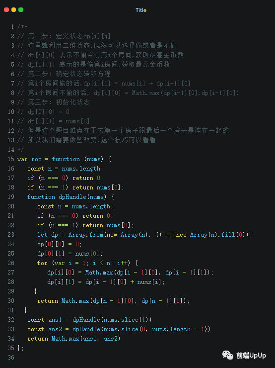 第一个房子跟最后一个房子是挨着的,意味着我们需要做些改变,这个我也是在提示下完成的,写法很巧妙,我们具体看下代码下👇